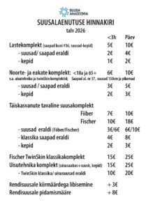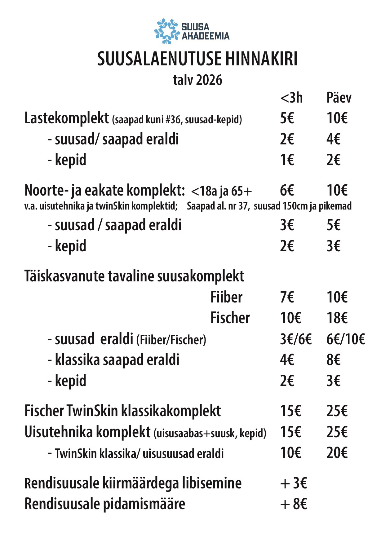 SuusalaenutusSuusahooldus Suusahoolduse LISAINFO: JAANUS KUNTS, TEL. 5814 9566Sel talvel asume Tartu laululava endise kohviku ruumides